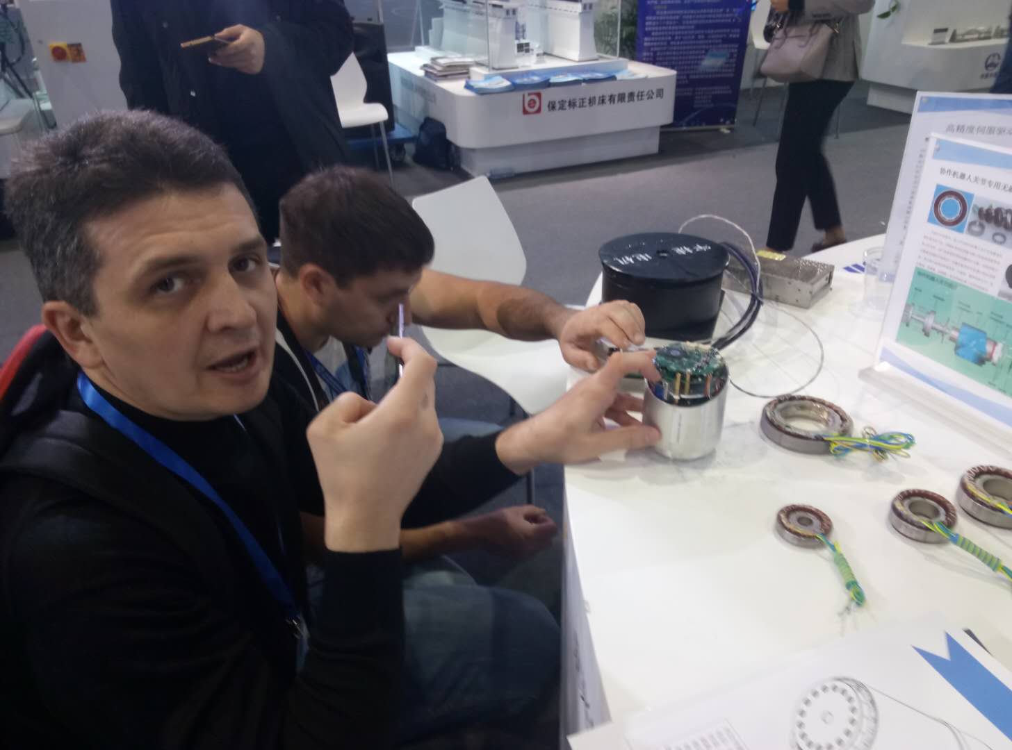 河北省宇捷電機科技有限公司此次參展電機,不僅僅吸引了國內友人的目光,同時博得了國外很多友人的關注,韓國友人一邊咨詢著電機的各種問題一邊認真的記錄到自己的本子上,俄羅斯友人邁克和好友,對每個產品都進行了拍照和視頻記錄,以便回國后更方便的和我們進行溝通,此次上海之行對河北省宇捷電機科技有限公司來說收獲頗多。